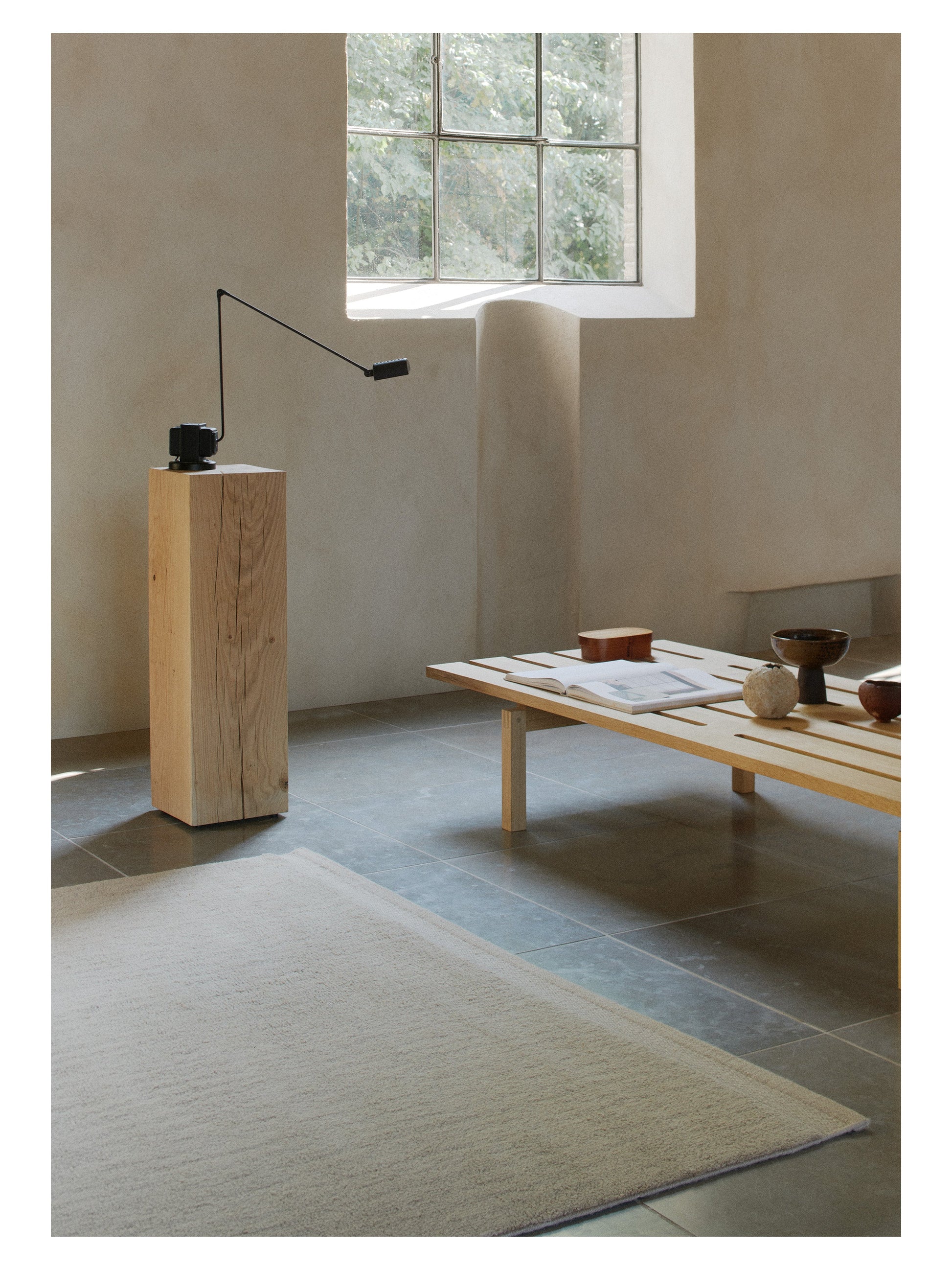 - Description : Offered in a considered palette of versatile tones, Hushed Frame's deliberate simplicity allows the tactile quality of the dense yarn to silently emerge. Crafted from a durable wool blend, the rug offers soft underfoot comfort, while the contrasting edges frame the inviting texture, creating a minimalist statement that reflects the rug's Nordic origins. Hand-crafted by Linie Design’s artisan weavers.