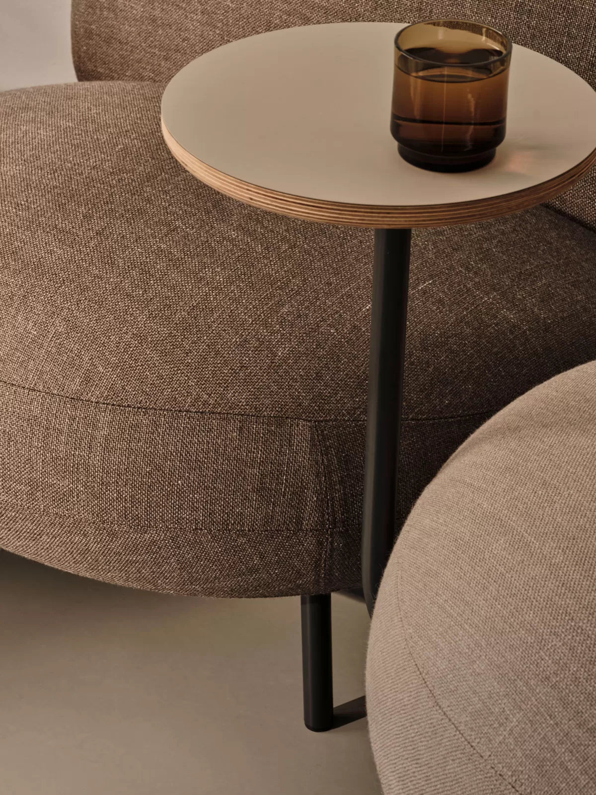 Maluma is a joyful, sectional seating system consisting of a circular seat with rounded backrest.