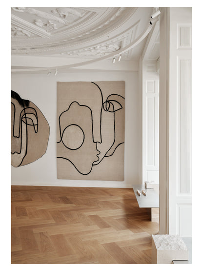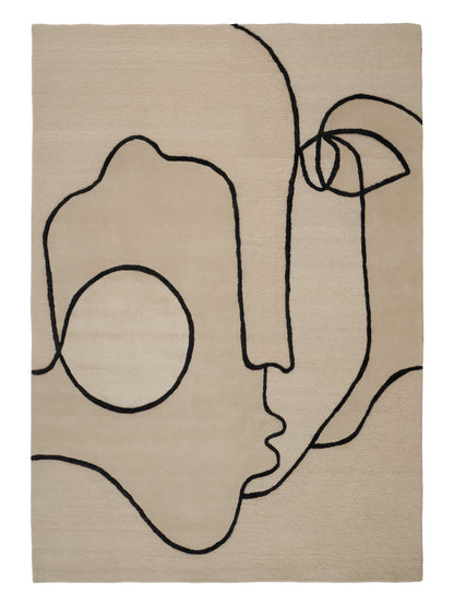 - Description : Self Mirage uses the energy of contrasting hand-drawn lines to create a strong visual narrative that reveals its face to the viewer. The interplay of contrasting black linen and sumptuously soft New Zealand wool and silk provide different depths, giving a tactile quality to the rug that is both timeless and contemporary.